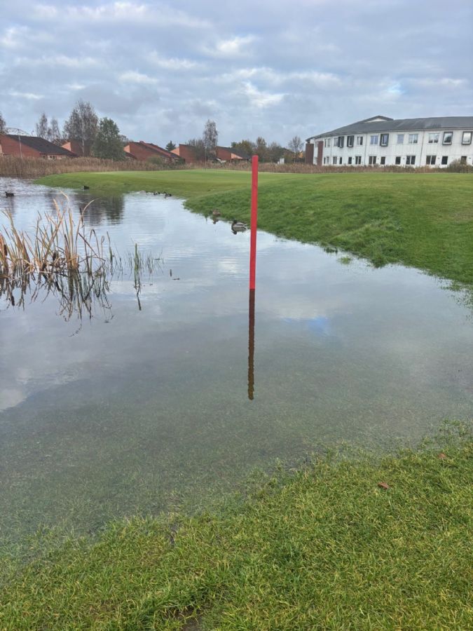 De siste ukene har vi fått store mengder nedbør, og værprognosene viser dessverre at det er ventet betydelig mer regn i dagene som kommer. Dette har ført til svært våte forhold på både bane og drivingrange.